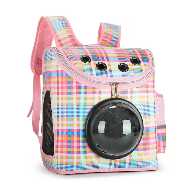 Рюкзак сумка перенесення для транспортування тварин кішок собак зі світловідбиваючими смужками 38x32x23 см (477239-Prob) Рож