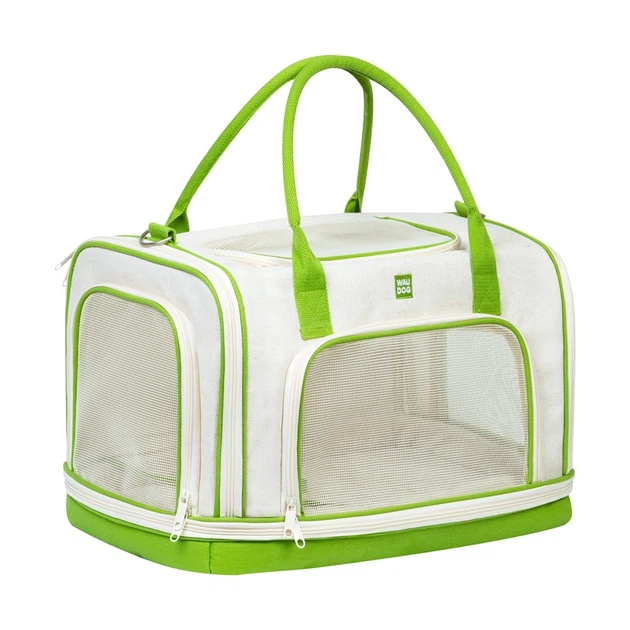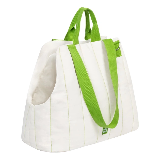 Сумка-переноска для котів та дрібних порід собак WAUDOG Relax Eco, біло-лаймова, 473028 см, до 8 кг, бавовна, сітчасті вікна
