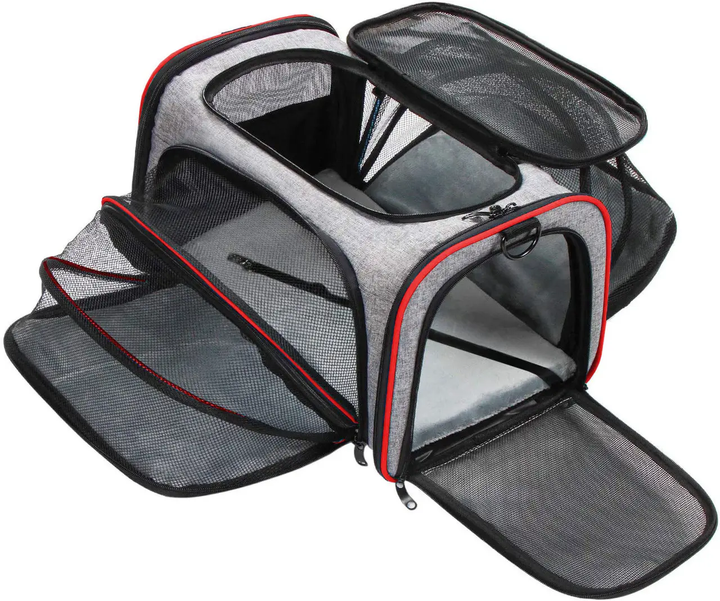 Сумка перенесення складана для тварин кішок собак з стінками, що розкладаються 78x47x29 см розмір L (477713-Prob) Сіро-черво