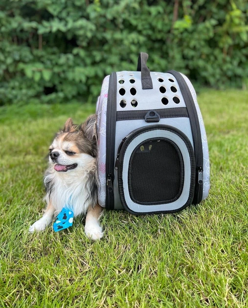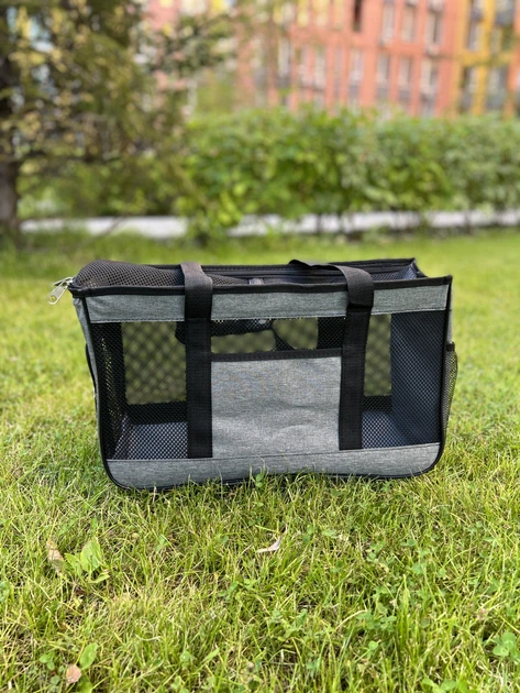 Сумка-переноска для собак і котів “Комфорт у дорозі” Сіра пряма