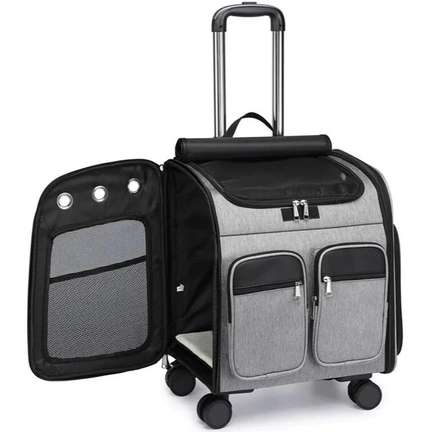 Сумка переноска для кота кішки собаки домашніх тварин двомісна сумка з віконцем і висувною ручкою на колесиках колесах котяч