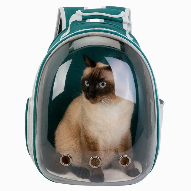 Рюкзак для перенесення тварин прозорий до 5кг, зелений, для зручних прогулянок з вихованцем