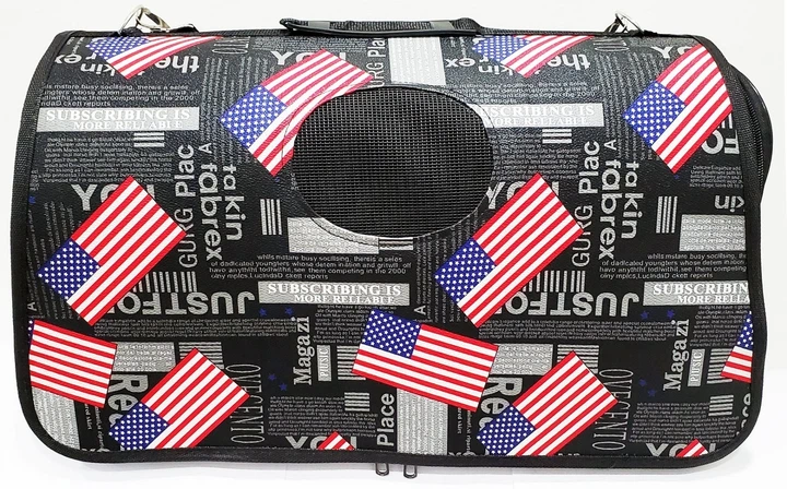 Сумка-переноска для котів та собак (розмір S до 5кг) Американський прапор чорна