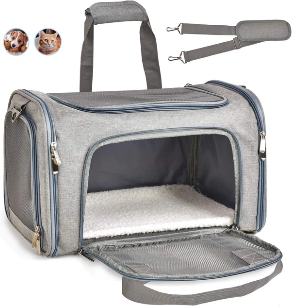 Велика Сумка - Перенесення для кішок і собак і цуценят до 11 кг з м'якими стінками, що відкривається на всі боки, сіра