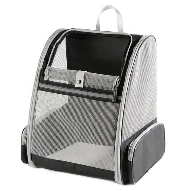 Рюкзак сумка перенесення для тварин кішок собак із сітчастими стінками підстилкою 41х28х35 см (477182-Prob) Сірий