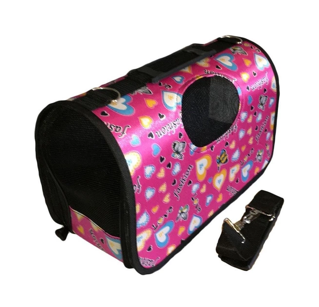 Сумка-перенесення для котів та собак малинова Сердечки (розмір L)