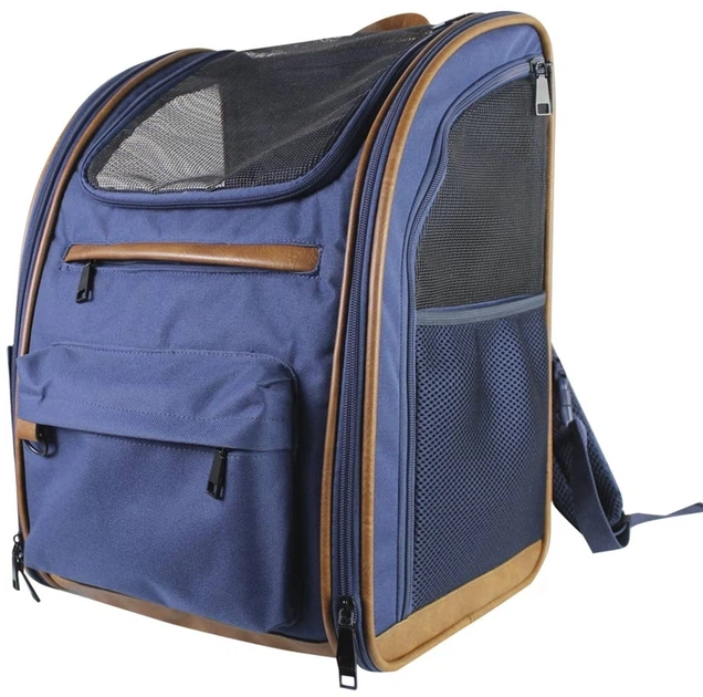Рюкзак-переноска для тварин вагою до 8 кг з додатковими кишенями Tomek Nobby Синій 43 х 20 х 28 см