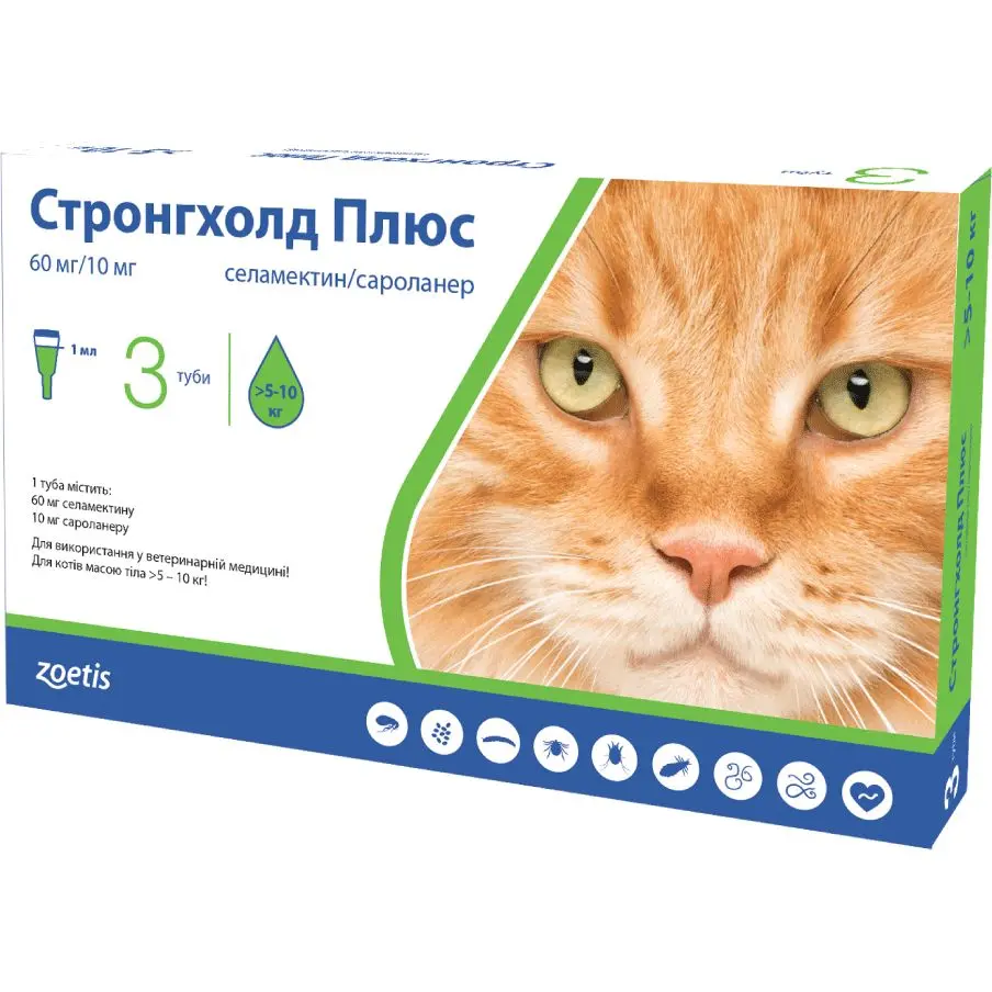 Краплі Стронгхолд Плюс для котів 5-10 кг від бліх та кліщів 1 мл х 1 піпетка 60 мг (10020781-1)