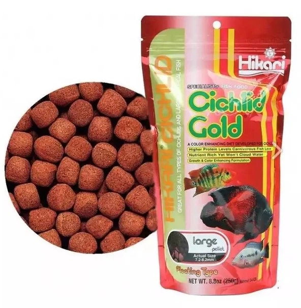 Корм Hikari Cichlid Gold (L) 250г, 7,2-8,2мм (гранули) для покращення кольору великих цихлід 30+см