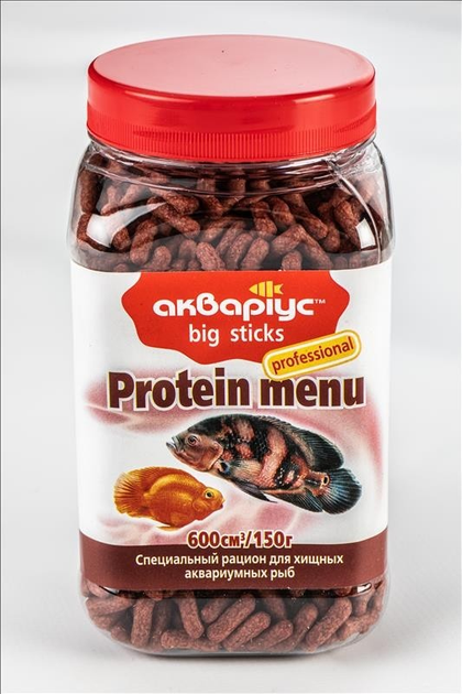 Корм Акваріус Протеїн меню палички для хижих видів акваріумних риб 150 г (4820079310314)