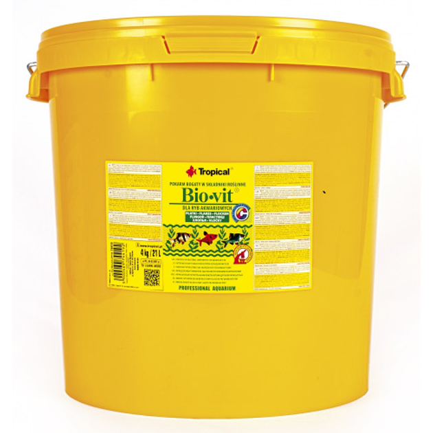 Сухий корм Tropical Bio-Vit для травоїдних акваріумних риб, 4 кг (пластівці)