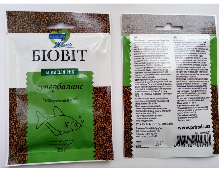 Корм для риб Природа Біовіт Супербаланс, гранульований 25г