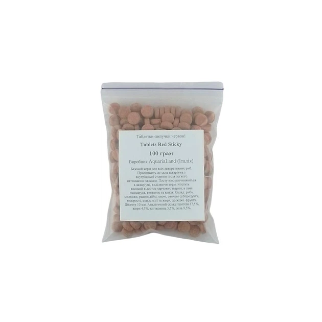 Корм AquariaLand Red Sticky Tabs 100г, таблетки липучки 10мм для всіх акваріумних риб