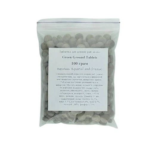 Корм AquariaLand Green Ground Tabs 100 г, таблетки 10мм для донних риб та сомів