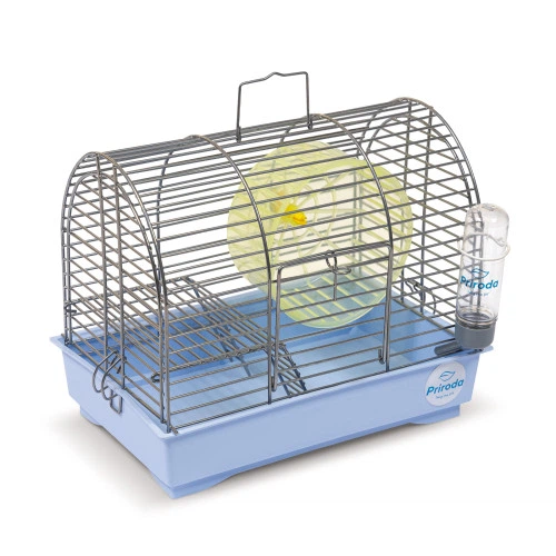 Клітка для джунгарських хом'яків та мишей з колесом Природа Фаворит хром/блакитна 30*20*24 см
