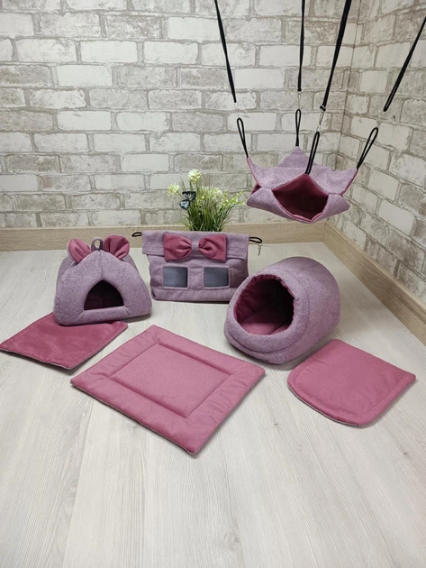Комплект для гризунів будинок, тунель, гамак, сінник для морських свинок, шиншил Animalsjoy (075)
