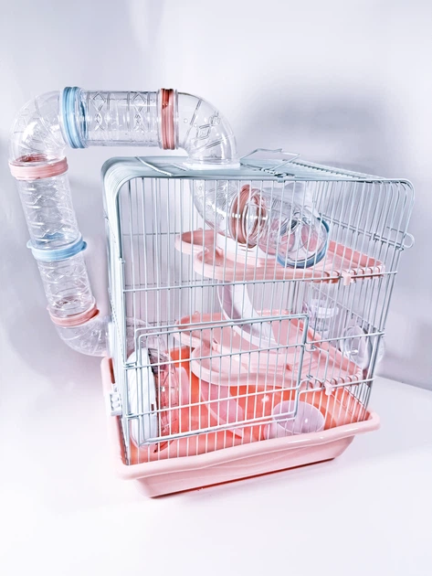 Клітина для хом'яків триповерхова M012B, рожева, 41х36х27см