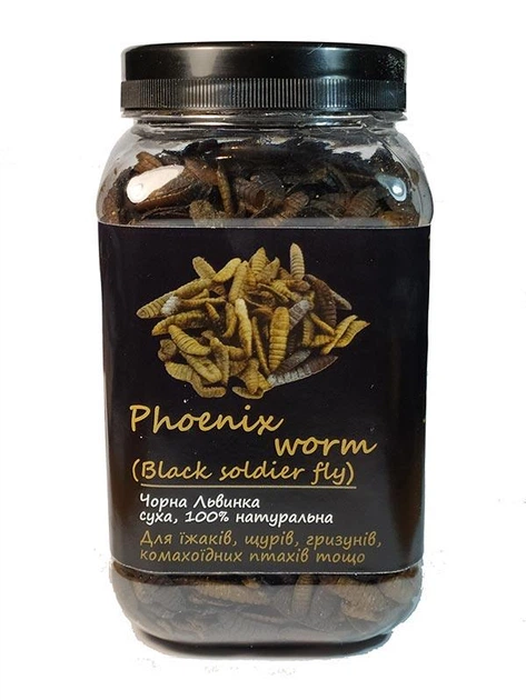 Чорна Львинка "Phoenix Worm" Буся. Корм для їжаків, птахів, гризунів, рептилій 600мл/200г
