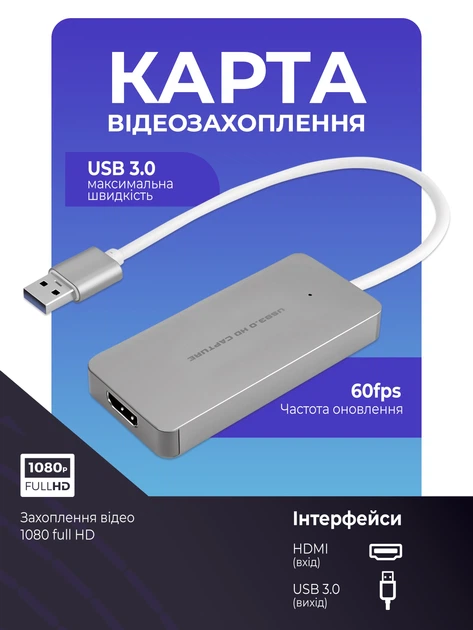 Карта відеозахоплення USB 3.0 to HDMI для Windows Linux Mac для стримінгу відеоконференцій Pavlysh 11T