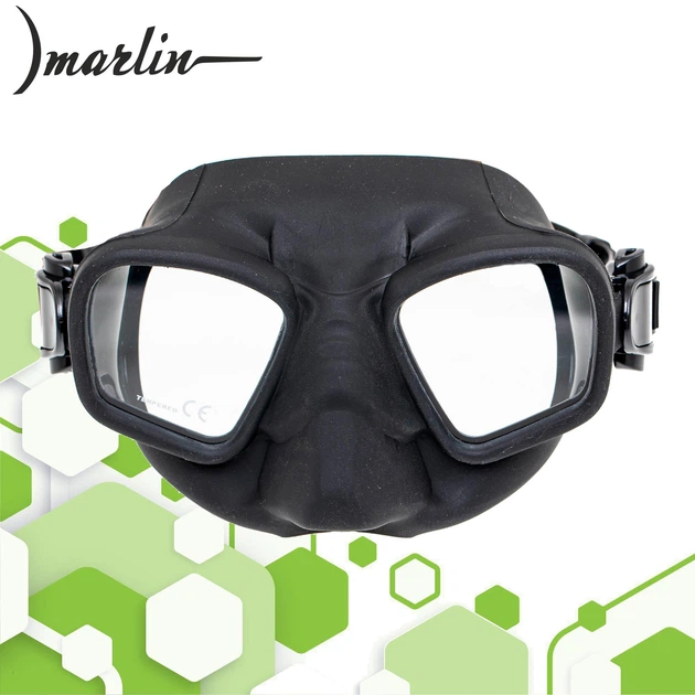 Силіконова маска для сноркелінгу та фрідайвінгу з анатомічним ремінцем, чорна