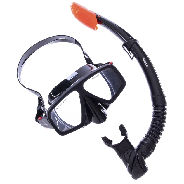 Набір для плавання маска із трубкою Zelart (термоскло, чорний силікон, пластик, чорний-оранжевий) (M273-SN124-SIL)