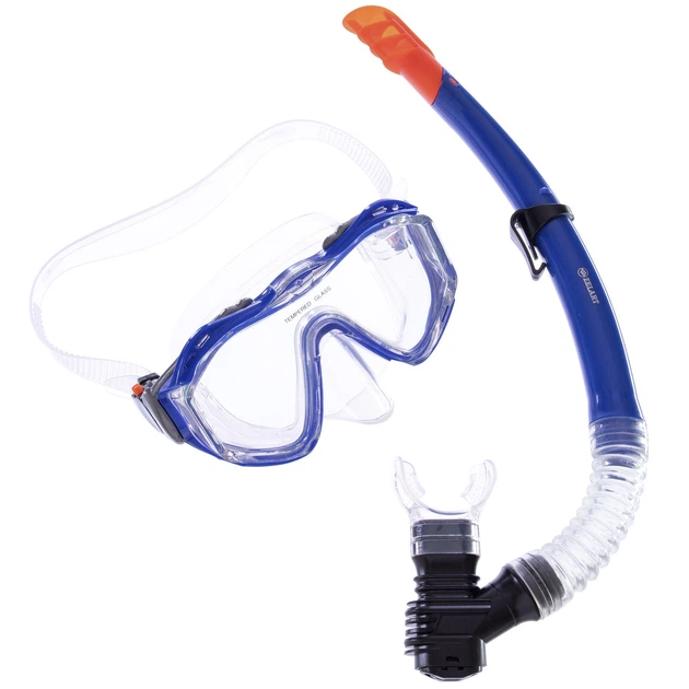 Набір для плавання маска з трубкою Zelart (термоскло, силикон, пластик, синій-чорний-оранжевий) (M309-SN132-SIL)