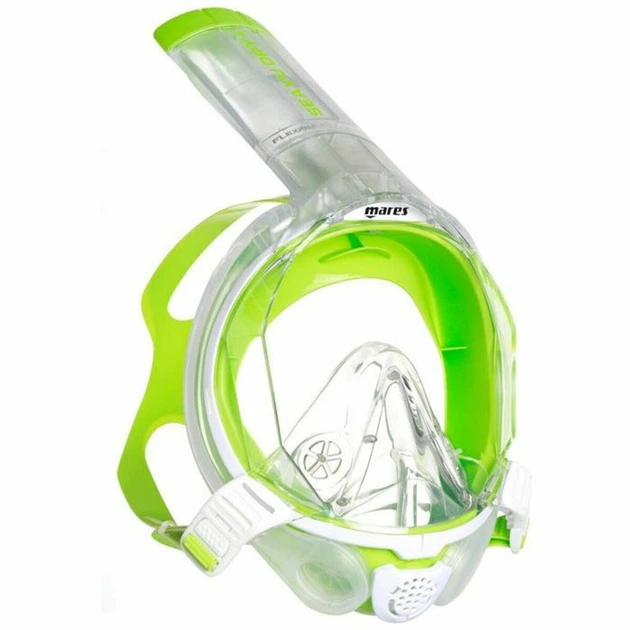 Повнолицева маска для снорклінгу із захистом від запотівання, силіконовий обтюратор, біло-салатова, S/M