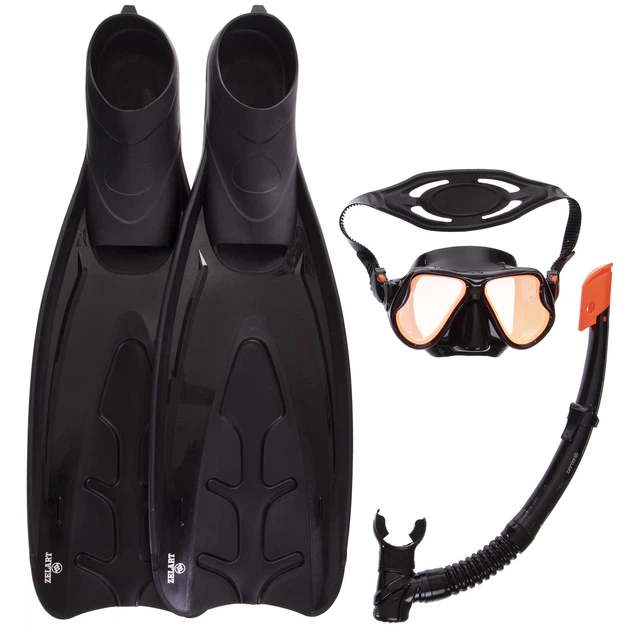 Набір для плавання маска з трубкою та ластами Zelart M266S-SN120S-F19 M-(40-41) Чорний