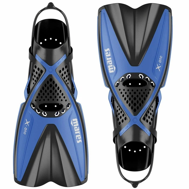Ласти з відкритою п'ятою для дайвінгу та сноркелінгу, регульовані, сині, розмір 41-45