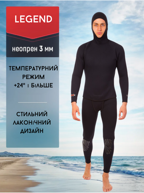 Гідрокостюм для підводного полювання чоловічий LEGEND PL-6536 (3мм неопрен, розмір XS, вага 52-65кг, чорний)