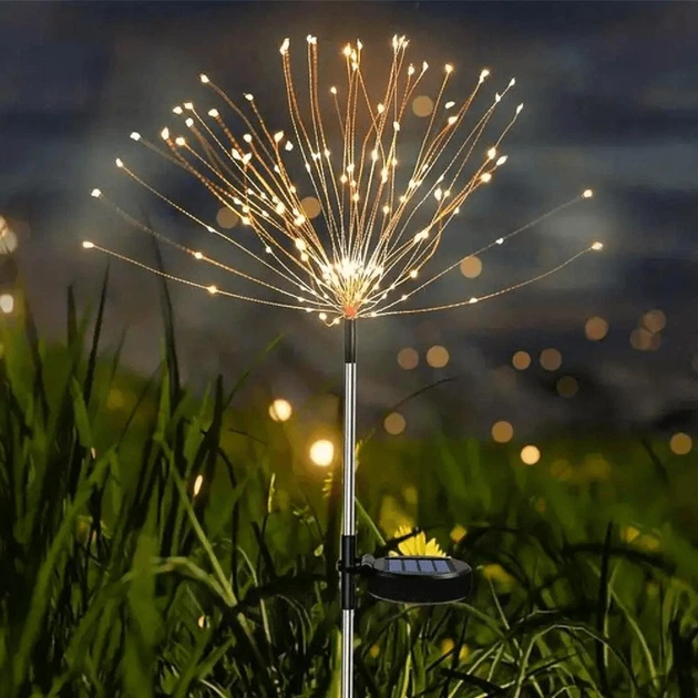 Ліхтар лампа світильник газонний садовий на сонячній батареї 90 LED лампочок Кульбаба тепла біла