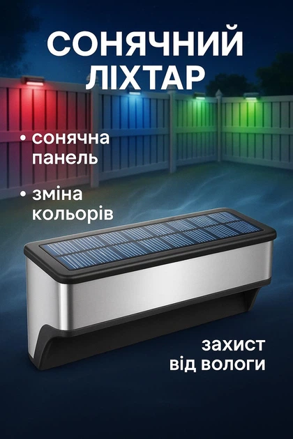 Садові світильники на сонячній батареї 4 шт з автоматичним вмиканням, різнокольоровим LED підсвічуванням та вологостійким ко