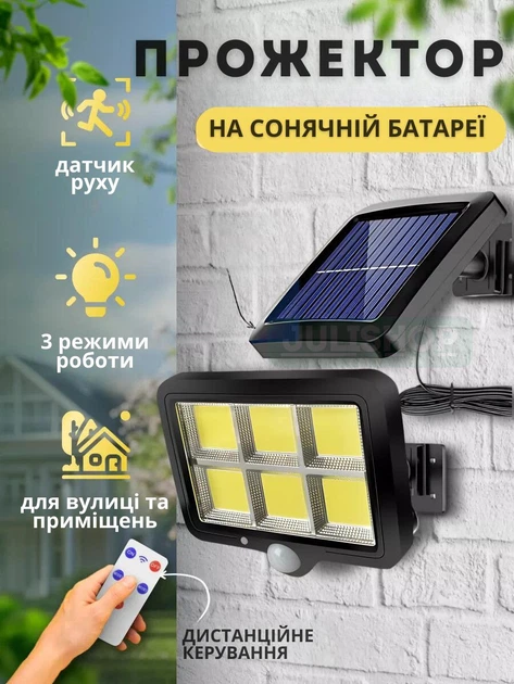 Вуличний ліхтар прожектор із сонячною батареєю пультом та датчиком руху (чорний)