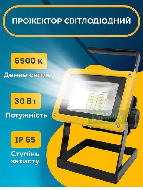 Світлодіодний прожектор 2в1 вуличний стаціонарний або ручний ліхтар з вологозахистом IP65, 30 Вт, 2400 лм