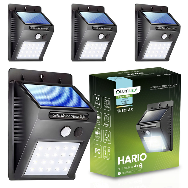 Набір із 4 настінних світильників Lumiled серії HARIO — автономні, холодне світло 6500 K, датчики руху + темряви