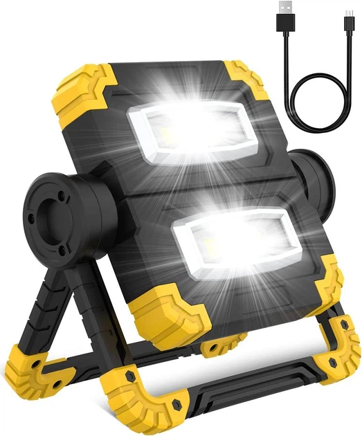 Прожектор подвійний світлодіодний COB 1400 люмен з акумулятором 5000 mAh 20W 4000K ліхтар