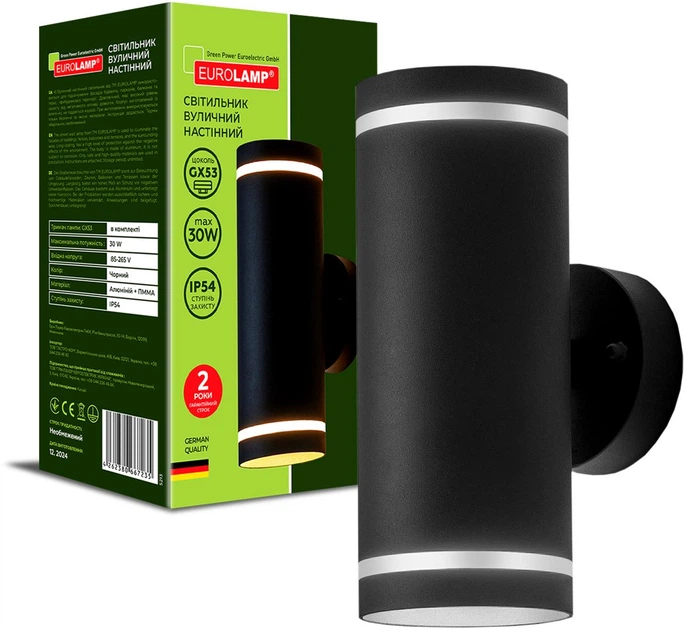 Вуличний світильник EUROLAMP 2xGU10 IP54 Чорний (4262380667259)