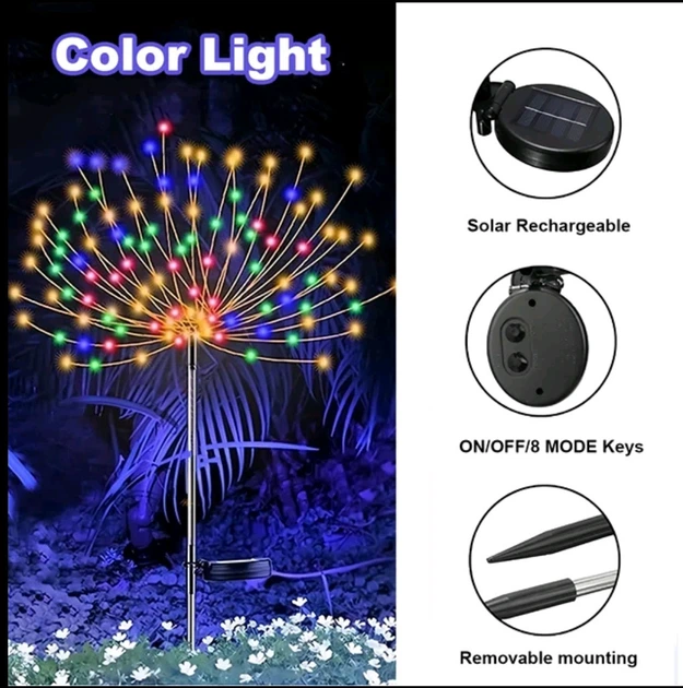 Садовий світильник на сонячній батареї 60 LED RGB