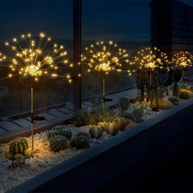 Декоративний садовий LED світильник Феєрверк 180led на сонячній батареї