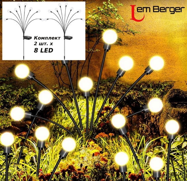 Світильник садовий Lem Berger, на сонячній батареї, 8 LED ліхтариків, тепле біле світіння, з автоувімкненням, комплект 2 шт.