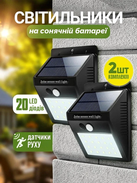 Вуличні ліхтарі на сонячній батареї led на акумуляторі 2 шт. настінний садовий фасадний світильник ліхтарики на сонячних бат