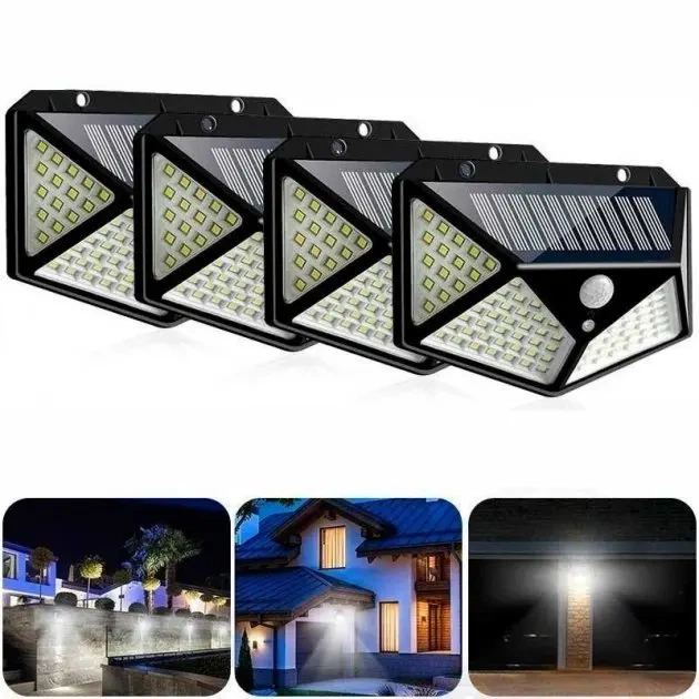 Вуличний настінний світильник Lesko SH-100 на сонячній батареї з датчиком руху 100 LED діодів
