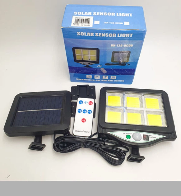 Вуличний ліхтар на сонячній батареї з пультом UKC BK-128-6COB IP65 датчик руху до 9 м