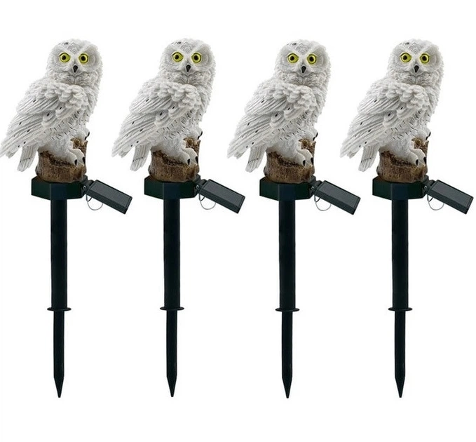 Набір 4шт Садова декоративна сонячна лампа-сова LED з датчиком сутінків, серії Noka, тепле світло 3000 K, IP44