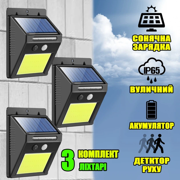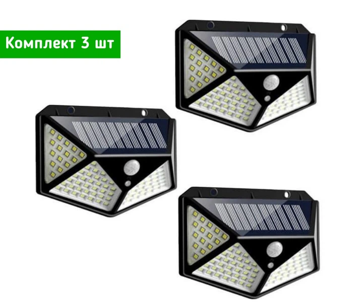 Комплект 3шт світлодіодний ліхтар вуличний світильник на сонячній батареї з датчиком руху Solar interaction wall lamp 100 LE