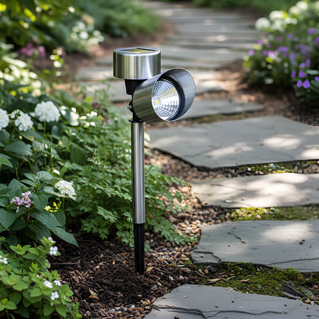 Садовий світильник у ґрунт 2W Sirius 14004 на сонячній батареї 35,5 см хромового кольору IP44
