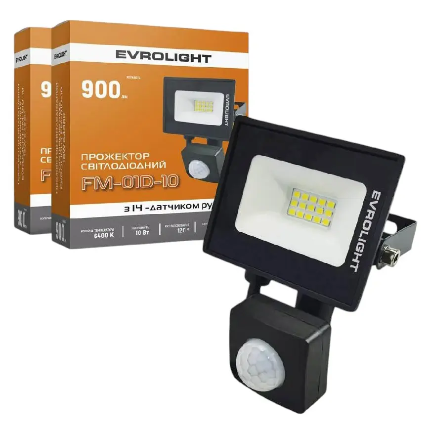 Набір: Прожектор світлодіодний з датчиком руху Evrolight FM-01D-10, 10W 6400К 2 шт. (000059244)
