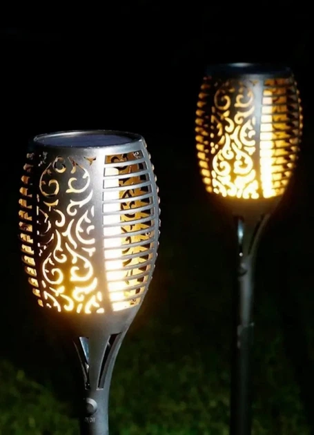 Садовий ліхтар-смолоскип 22см на сонячній батареї Вуличний ліхтар з ефектом полум'я