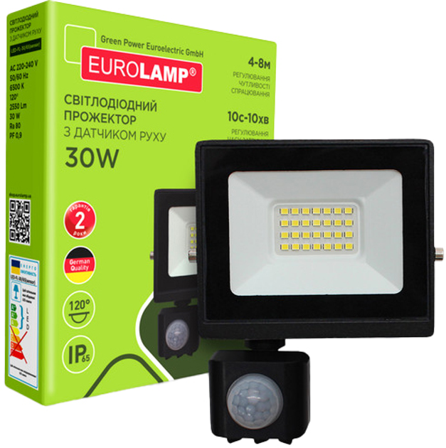 Прожектор EUROLAMP LED SMD 30W 6500K з датчиком руху