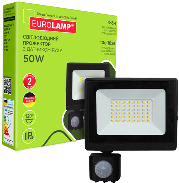 Прожектор EUROLAMP LED SMD 50W 6500K з датчиком руху